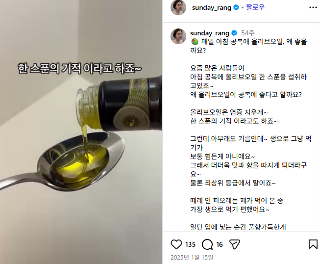 무엇보다 올레샷, 올애샷 등등 올리브유를 먹는게