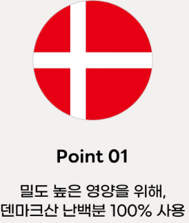 1. 덴마크산 난백 분말 60%함유 하고 있다는 점
