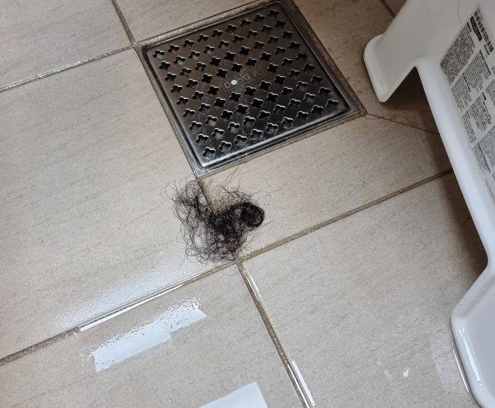 샤워 후 배수구에 수북이 쌓인 머리카락을 보고