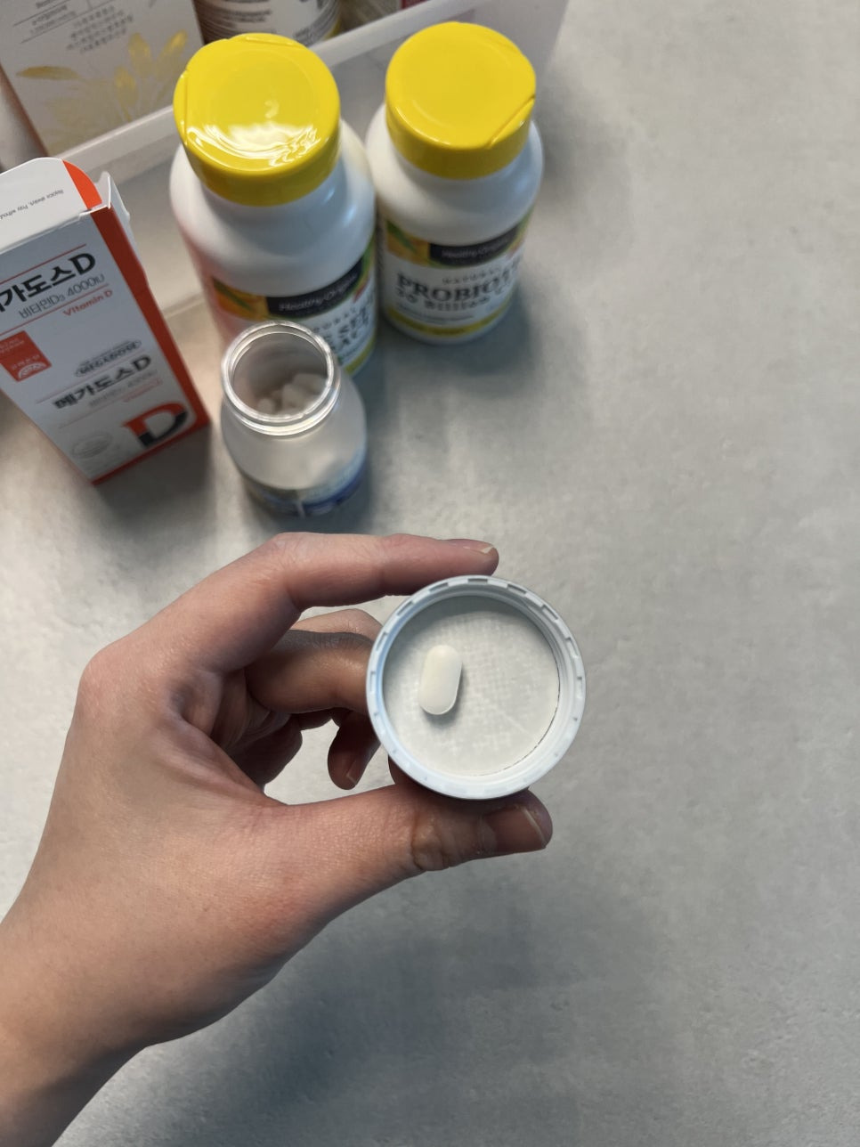 : 가루 타입은 맛이 너무 강해서 힘든데, 이건 정제 형태라 목 넘김이 편했습니다.